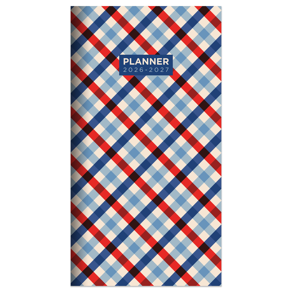 You'll be mad for plaid with this 2-year small monthly planner with a fun patriotic plaid cover spanning the months of January 2026 through December 2027. Including monthly views with unlined grid space for daily planning, plus bonus space for notes, the 3.5" (w) x 6.5" (h) checkbook size makes this perfect for a purse, briefcase or backpack and comes with a durable cover and additional lined notes pages in the back. The monthly boxes measure .85" (w) x 1.25" (h). Printed on FSC-certified paper.