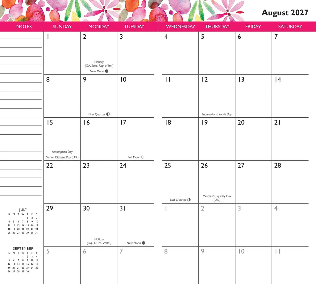 Lightweight little calendar is ideal for pocket, purse, or desk -- plan on the go, everywhere you go!