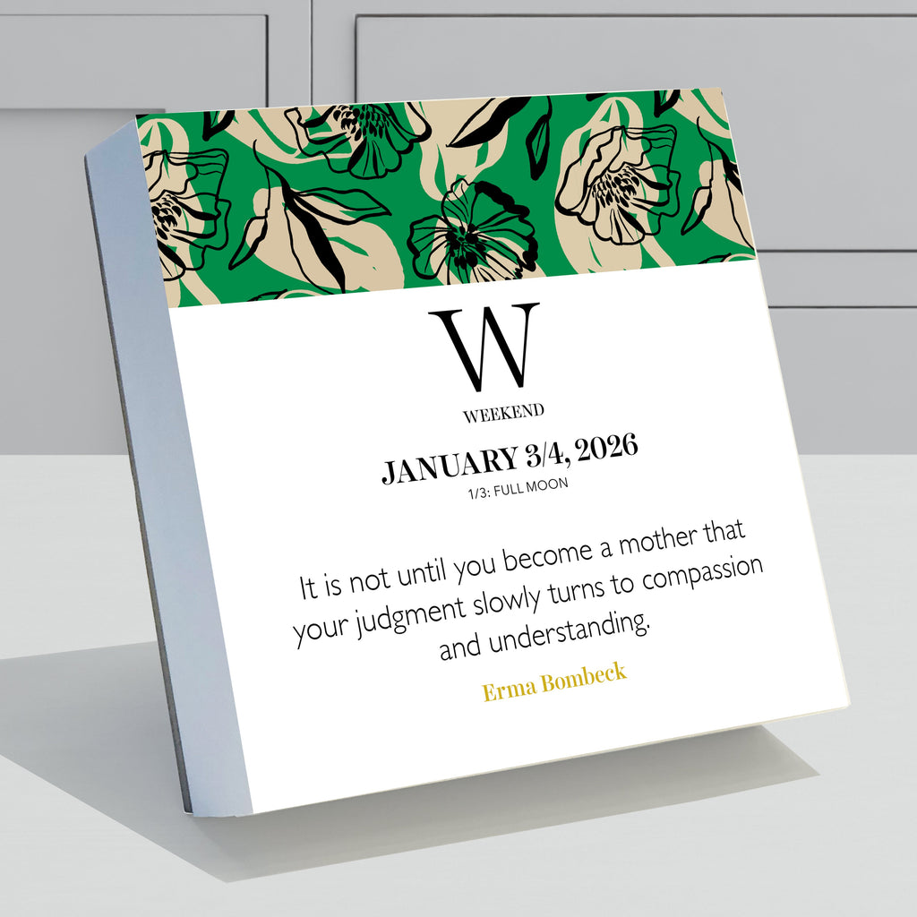Empowered women support, empower and inspire OTHER women! This calendar is filled with motivational quotes from some of history's most influential women. Our 2026 daily desk calendar (January 2026 - December 2026) measures 5.25" x 5.25" and comes with a foldout easel to sit on your desk. The daily pages (weekends combined) easily tear off and are designed with bright colors and a notable quote on the front with lined space for notes on the reverse. Calendar comes packaged in a wraparound cover. This product contains no plastic and is printed on FSC-certified paper.