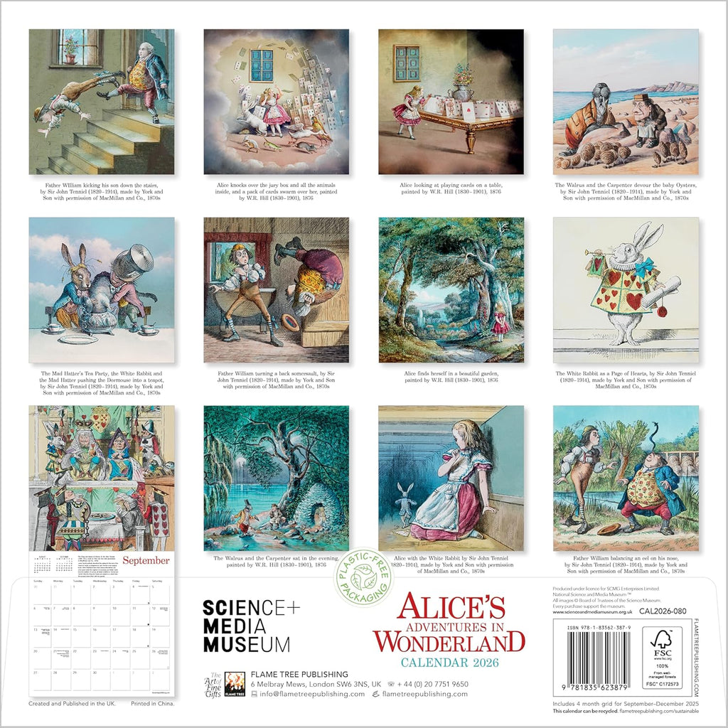 The Science Museum Group is a collection of museums comprising: Science Museum, Science and Industry Museum, National Railway Museum, Locomotion, National Science and Media Museum, and National Collections Centre Museum. The breadth of the collection is regularly showcased at their sites across the UK. This calendar features the breathtaking magic lantern slides of Lewis Carroll’s beloved Alice in Wonderland. Informative text accompanies each work in this mini wall calendar and the datepad features previous and next month’s views. Printed on FSC-certified paper, with plastic-free packaging.