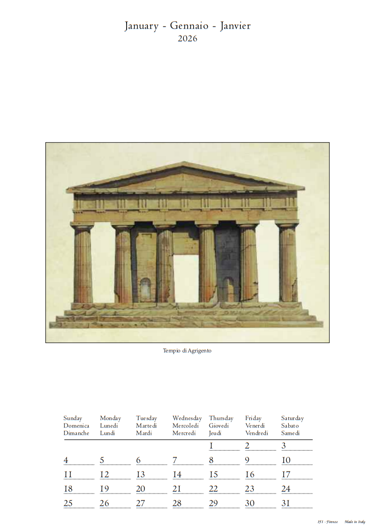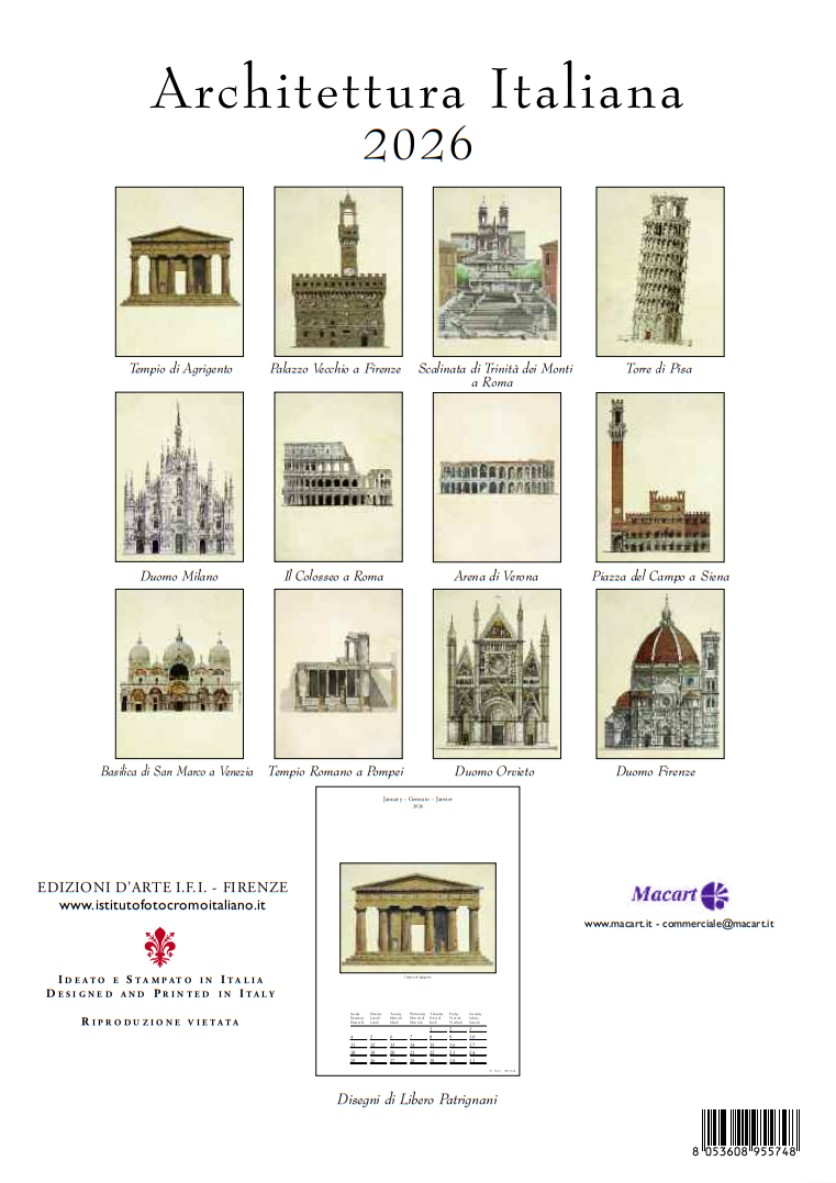 Printed on premium ivory paper with exceptional clarity, this calendar brings historic artistry to lifeÑperfect for lovers of architecture and Italian culture.