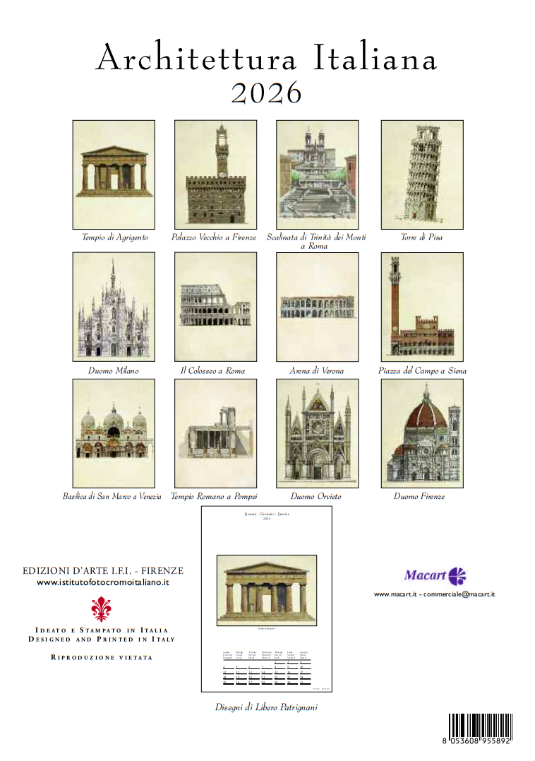 Celebrate the style and sophistication of Milan with the Architettura Milano Ð 2026 Art Calendar. Each month features beautifully printed artwork of the cityÕs iconic architectural highlights, from historic structures to modern design.