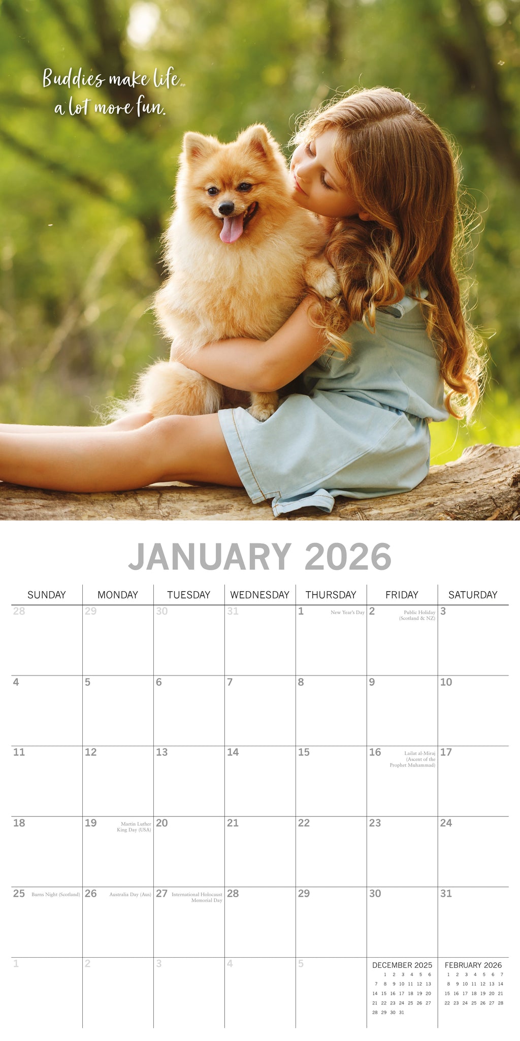 This exquisitely designed 2026 Best Buddies Square Wall Calendar from The Gifted Stationery Co. is ideal for your home or office and makes a thoughtful holiday gift for your loved ones. It features 13 stunning images of Best Buddies and includes large date grids for jotting down appointments, birthdays, and other important events. When opened, it measures 30 x 60 cm.