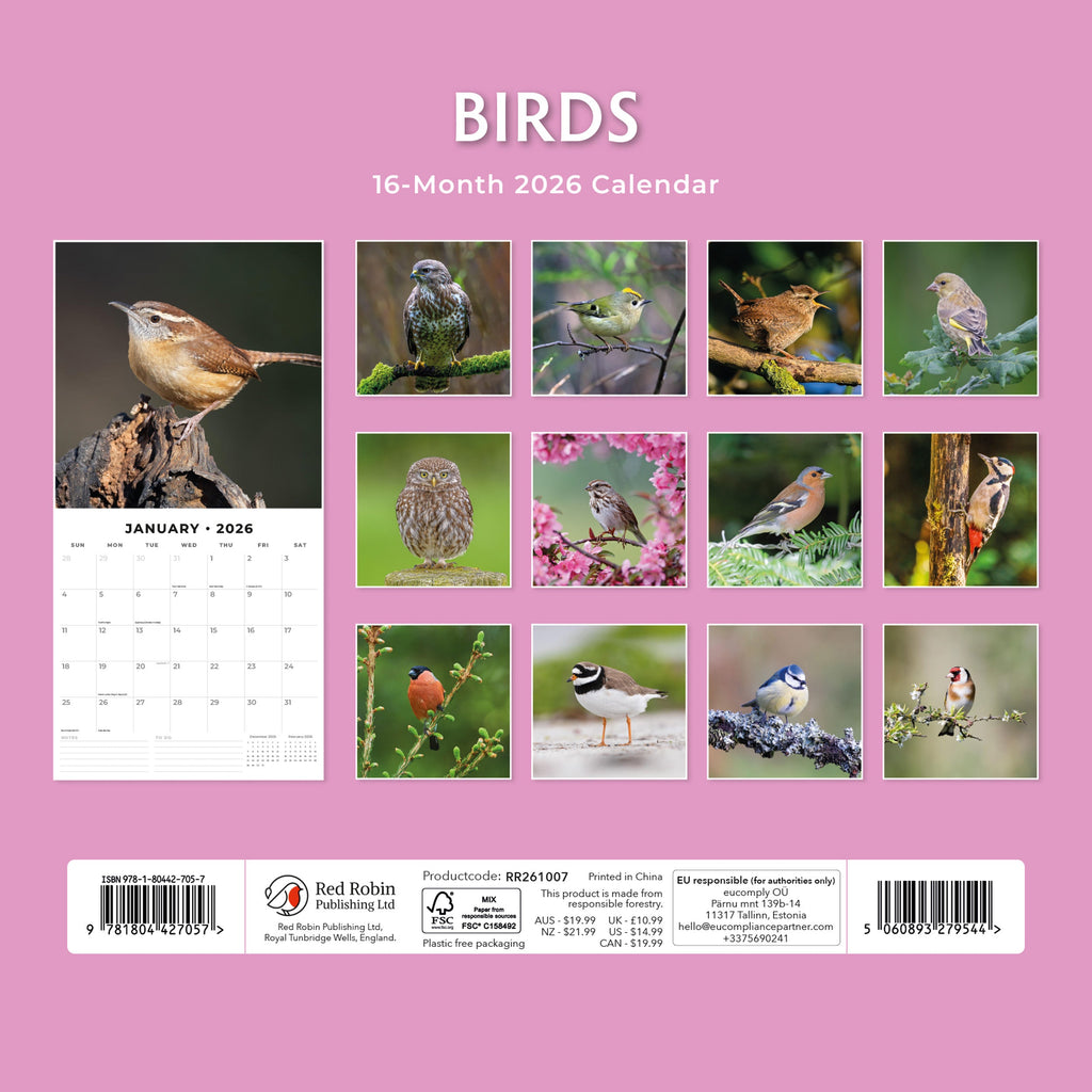 Packaged in a 100% plastic-free, sustainable, FSC-certified envelope, this 2026 Birds Square Wall Calendar from Red Robin Publishing Ltd includes 12 months plus 4 bonus months, providing extended planning and a full year of enjoyment. .