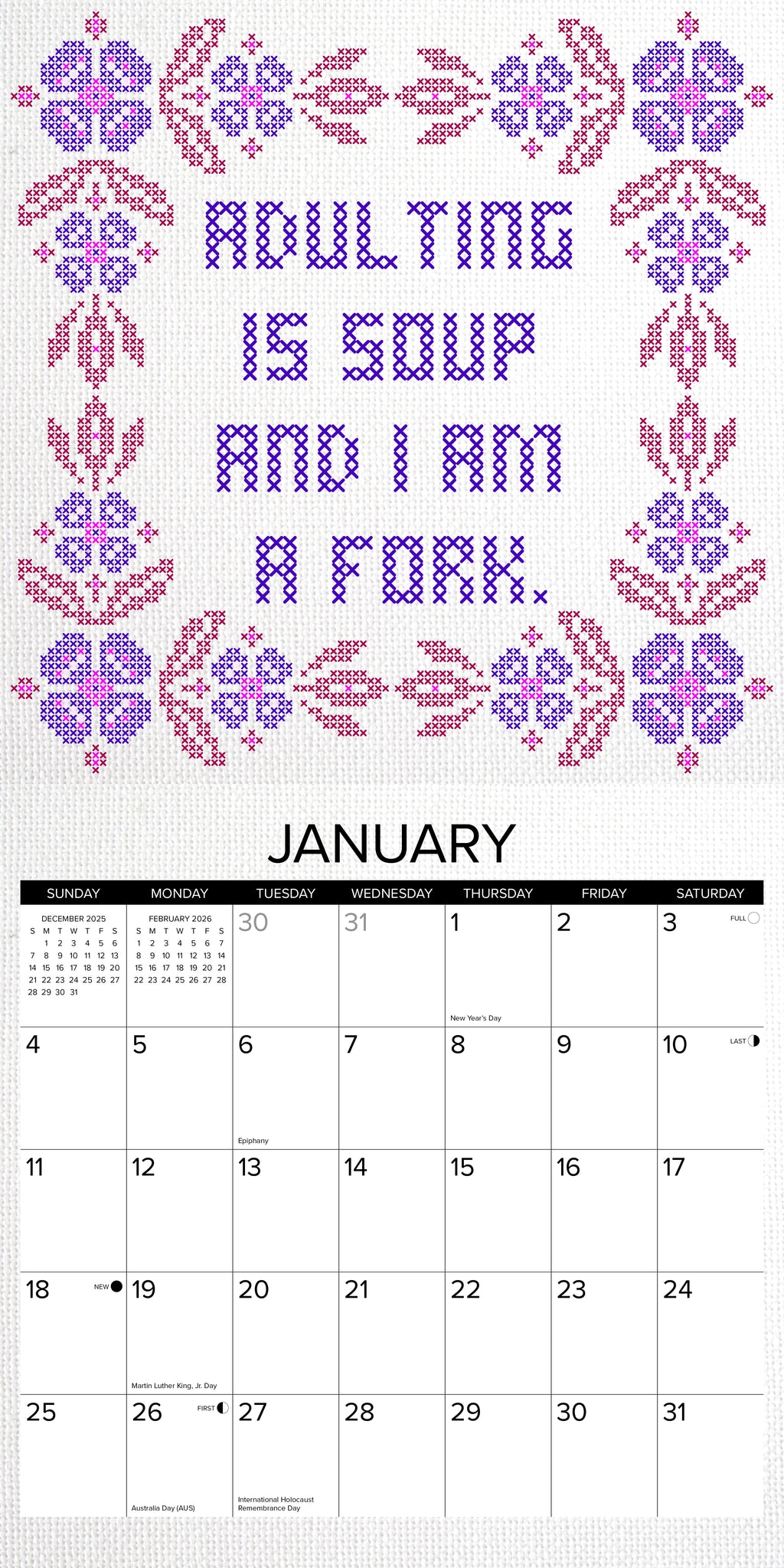 • BONUS FEATURES –US and International holidays and moon phases (CST) noted on each month for easy tracking.