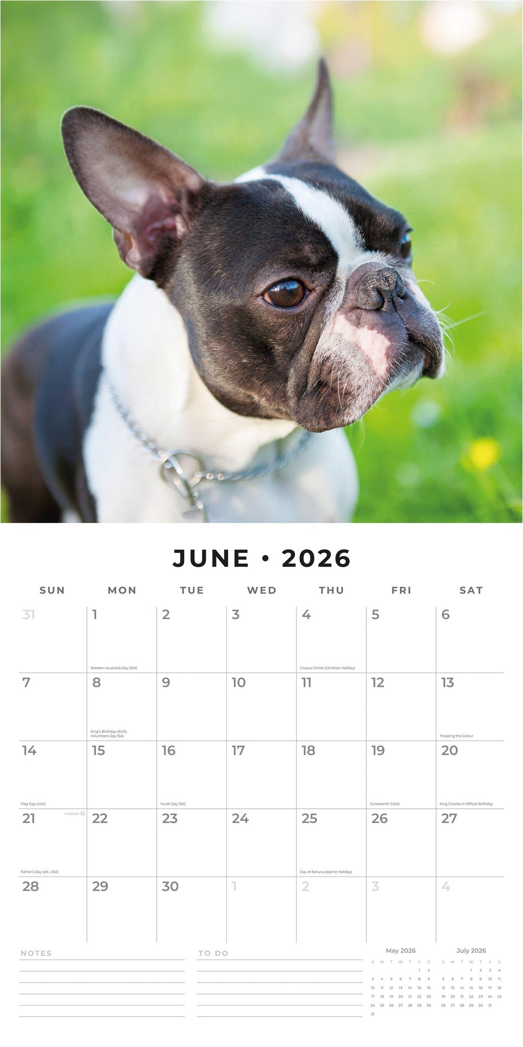 Packaged in a 100% plastic-free, sustainable, FSC-certified envelope, this 2026 Boston Terriers Square Wall Calendar from Red Robin Publishing Ltd includes 12 months plus 4 bonus months, providing extended planning and a full year of enjoyment. .
