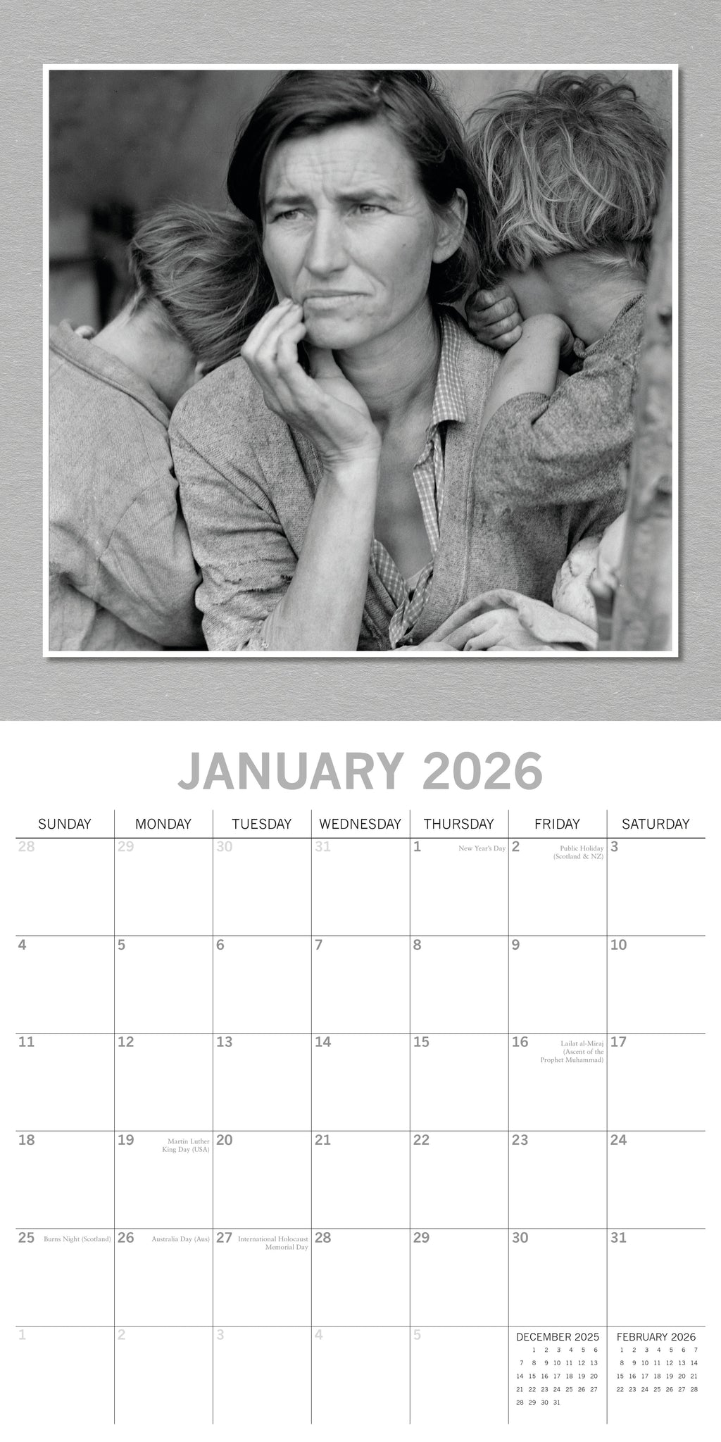 The 2026 Classic Photography Square Wall Calendar spans 16 months—from September 2025 through December 2026—with the final four months of 2025 presented in a compact, mini-grid format. Each monthly spread begins on Sunday, with the top half showcasing a beautiful image and the bottom half featuring an easy-to-read monthly layout. The calendar comes shrink-wrapped for protection. .