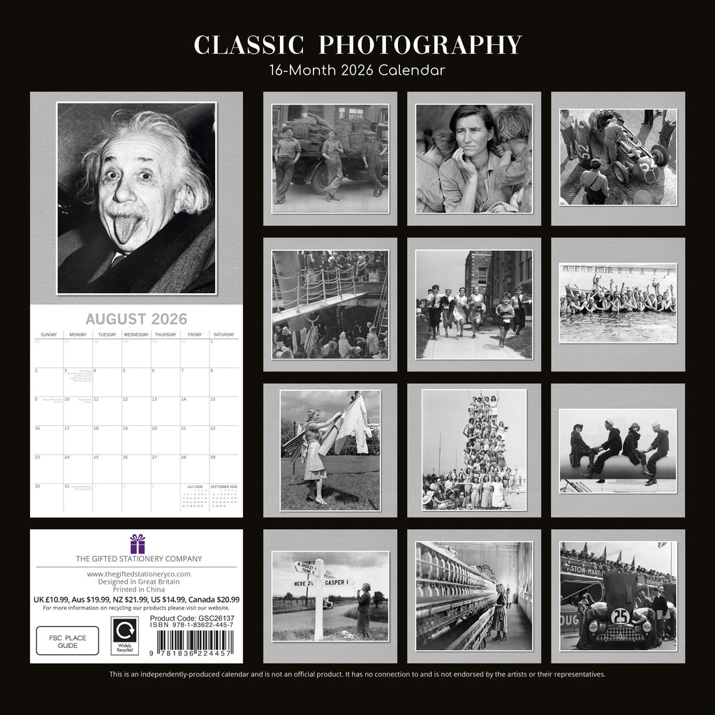 This exquisitely designed 2026 Classic Photography Square Wall Calendar from The Gifted Stationery Co. is ideal for your home or office and makes a thoughtful holiday gift for your loved ones. It features 13 stunning images of Classic Photography and includes large date grids for jotting down appointments, birthdays, and other important events. When opened, it measures 30 x 60 cm.