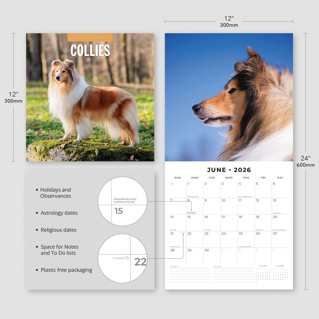 Step into the year ahead with our exquisite 2026 Collies - Square Wall Calendar, featuring 12 stunning 30 x 30 cm photos of collies—one for each month. Each image captures the essence of the theme, bringing beauty and inspiration to your space all year long.