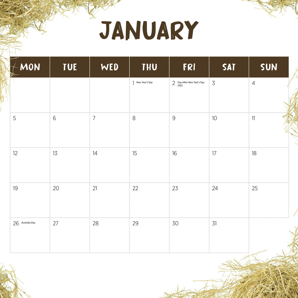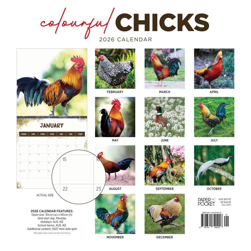 Inside this bright and colourful 2026 wall calendar, you'll find some of the most gorgeous roosters around. Their fluffy feathers and astounding features will be sure to captivate you each month.