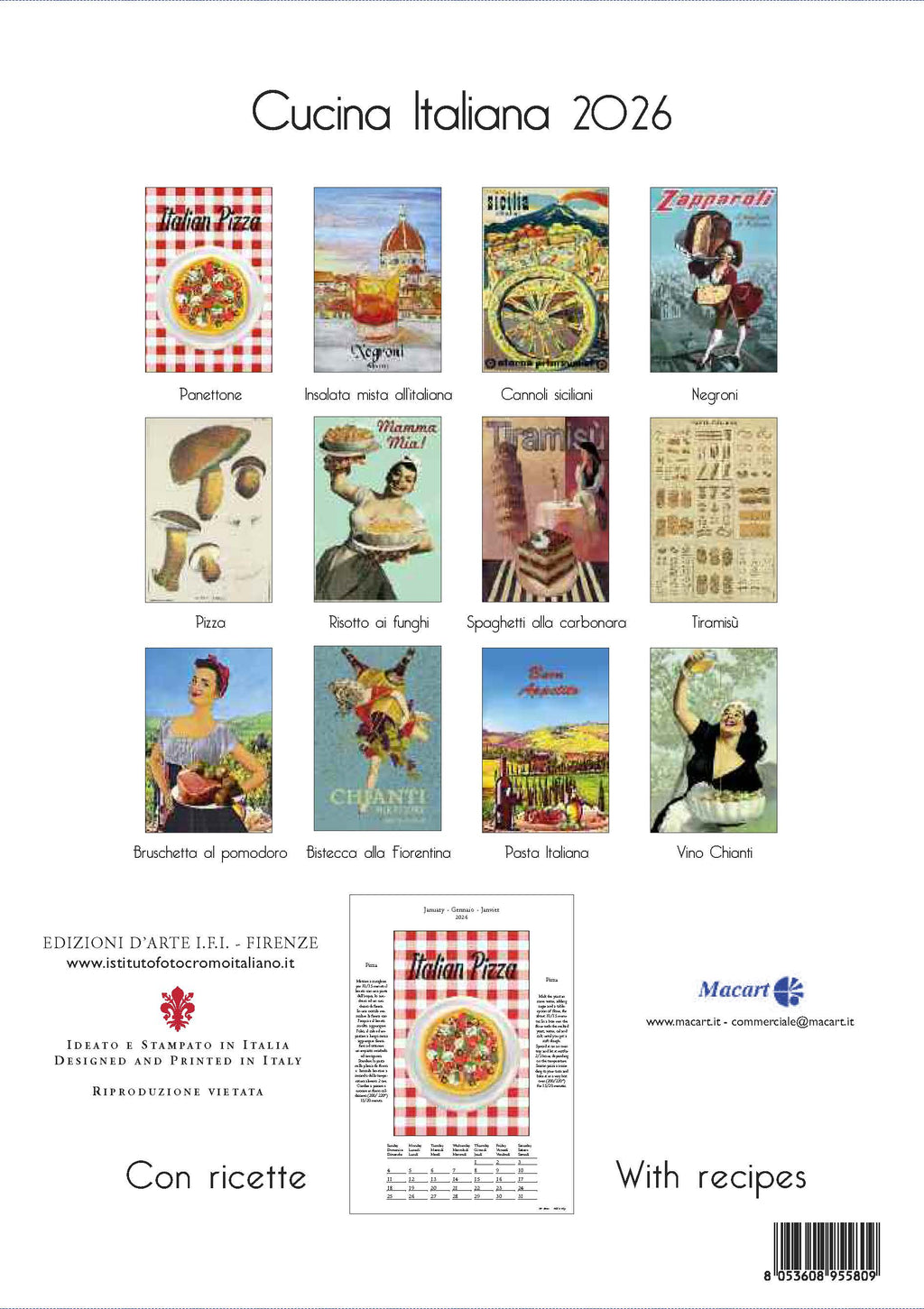 Bring the flavors of Italy into your home with the Istituto Fotocromo Italiano – 2026 Cucina Italiana Art Calendar (24 x 34 cm). Each month features stunning vintage-style artwork alongside a traditional Italian recipe—perfect for adding beauty and inspiration to your space.