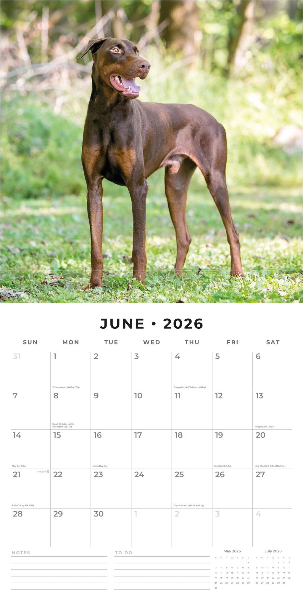 Packaged in a 100% plastic-free, sustainable, FSC-certified envelope, this 2026 Dobermans Square Wall Calendar from Red Robin Publishing Ltd includes 12 months plus 4 bonus months, providing extended planning and a full year of enjoyment. .