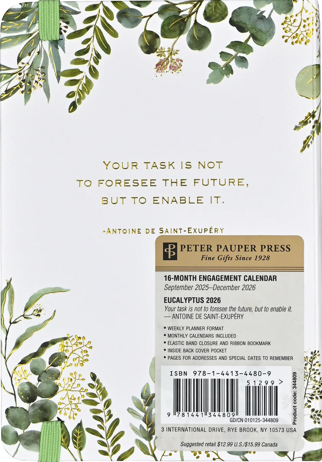 Lightweight calendar measures 5'' x 7'' and slips easily in most bags and backpacks.