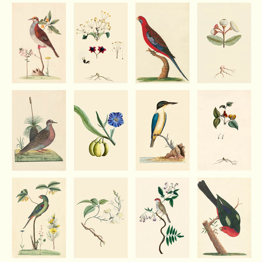 Exquisite watercolour images depicting the birds and flowers of Sydney Cove, depicted by George Raper (1769-1796), a Royal Navy Officer who travelled on the First Fleet to Australia