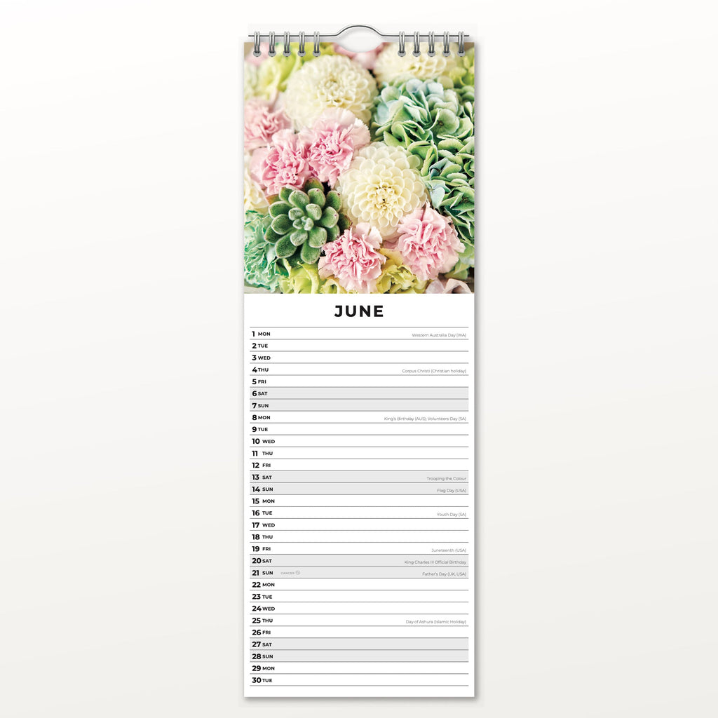 Explore the year ahead with our exquisite 2026 Floral Collection - Slim Wall Calendar, showcasing 12 stunning 41 x 15 cm images—one for each month. With its sleek vertical format, this calendar brings a stylish and space-saving touch to any wall, while highlighting the beauty of Floral Collection throughout the year.