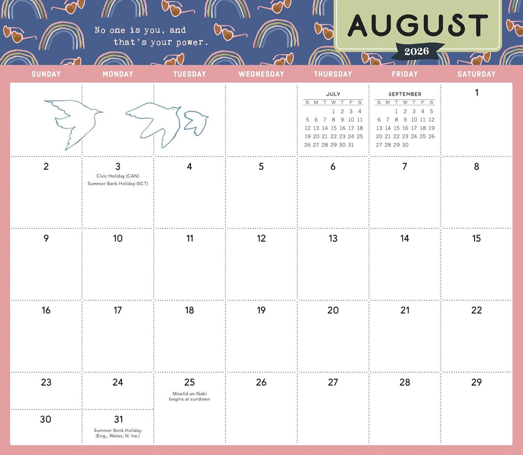 MINDFUL AND MAGNETIC: With a month at a glance grid and magnetic backer plus drill-hole, these compact format 9½” x 8¼” padded calendars are perfect for fridges, walls, cubicles, and desks.