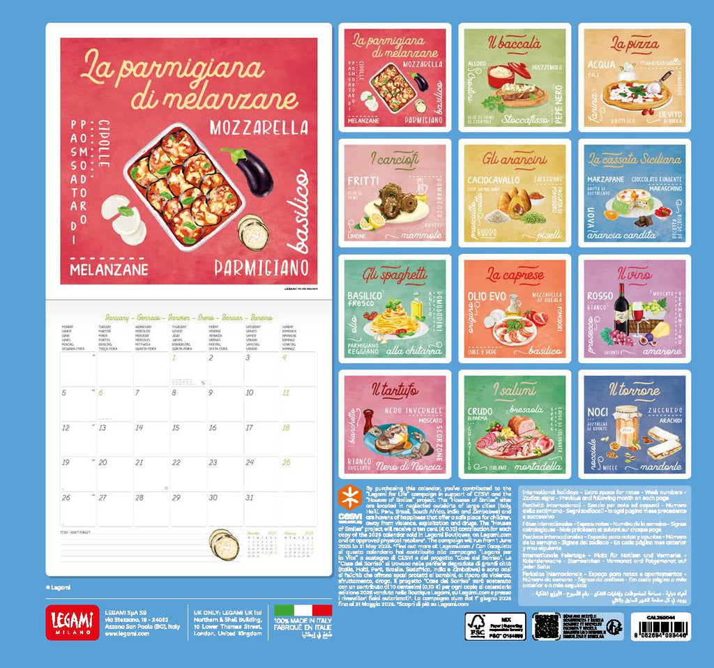 Live the Italian food experience all year with the Legami La Dolce Vita Wall Calendar 2026. From gelato to lasagne, this gorgeous annual calendar features a different food-themed drawing to help you plan each month, keep track of international holidays and take note of important events and reminders.
