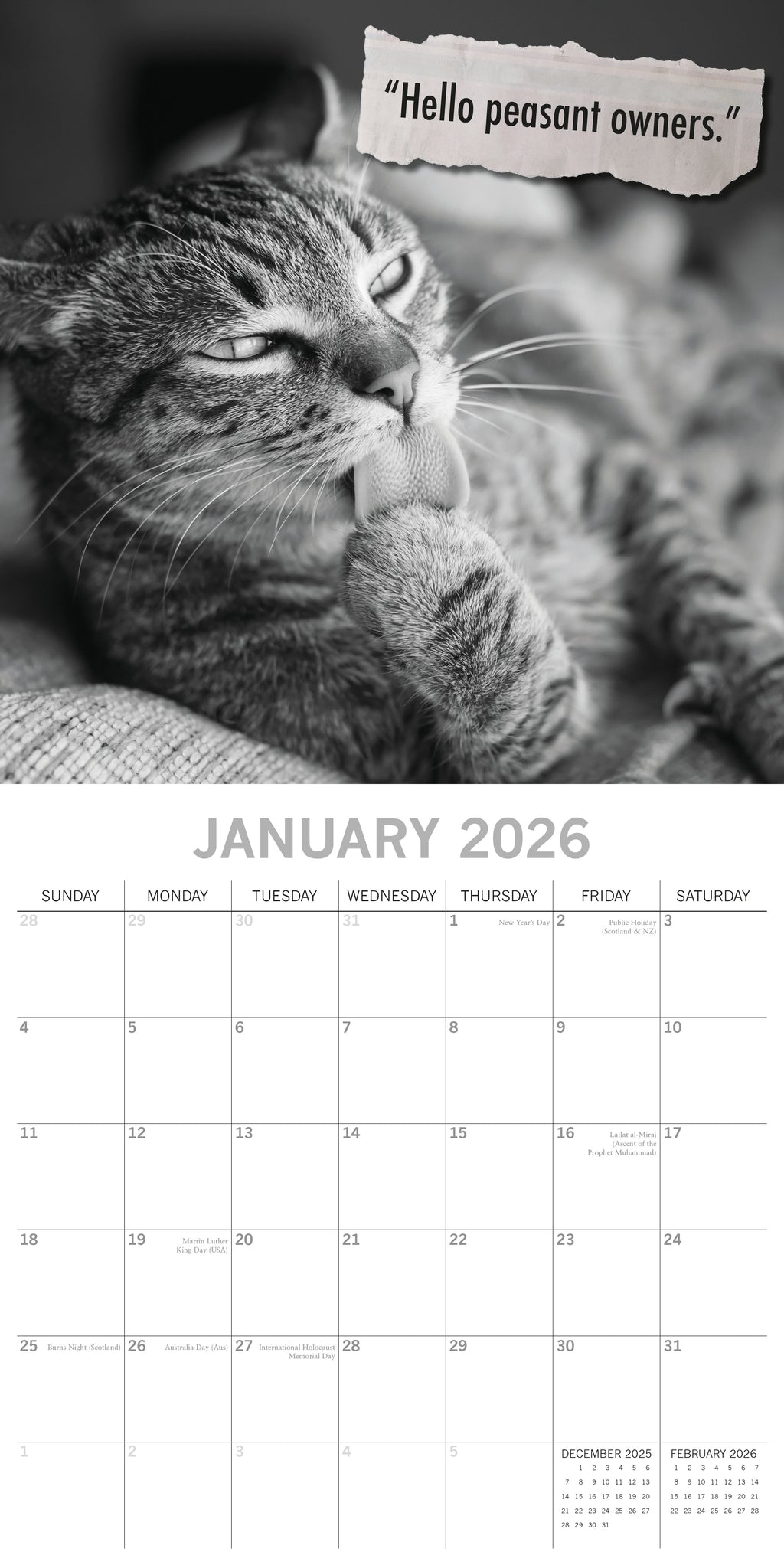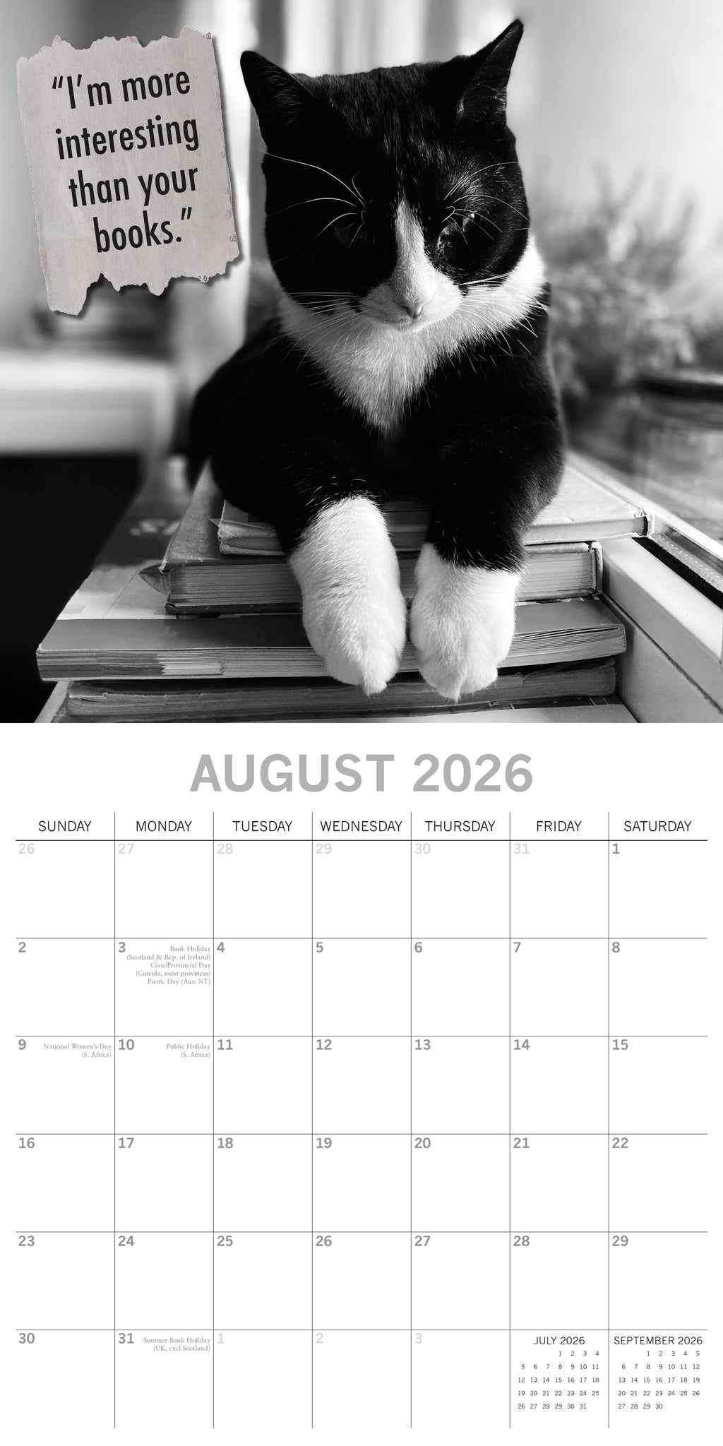 This exquisitely designed 2026 Moggies Square Wall Calendar from The Gifted Stationery Co. is ideal for your home or office and makes a thoughtful holiday gift for your loved ones. It features 13 stunning images of Moggies and includes large date grids for jotting down appointments, birthdays, and other important events. When opened, it measures 30 x 60 cm.