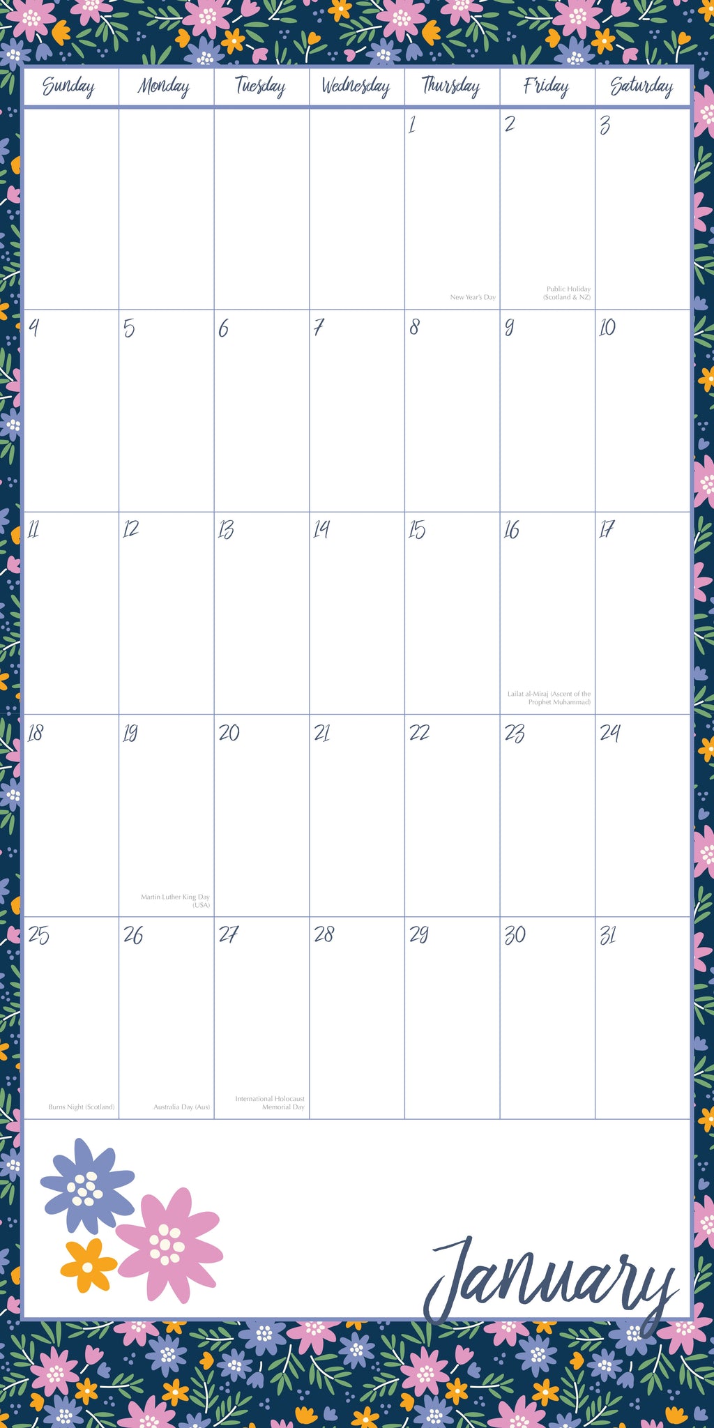 The 2026 Mum's Organiser Square Wall Calendar spans 16 months—from September 2025 through December 2026—with the final four months of 2025 presented in a compact, mini-grid format. Each monthly spread begins on Sunday, with the top half showcasing a beautiful image and the bottom half featuring an easy-to-read monthly layout. The calendar comes shrink-wrapped for protection. .