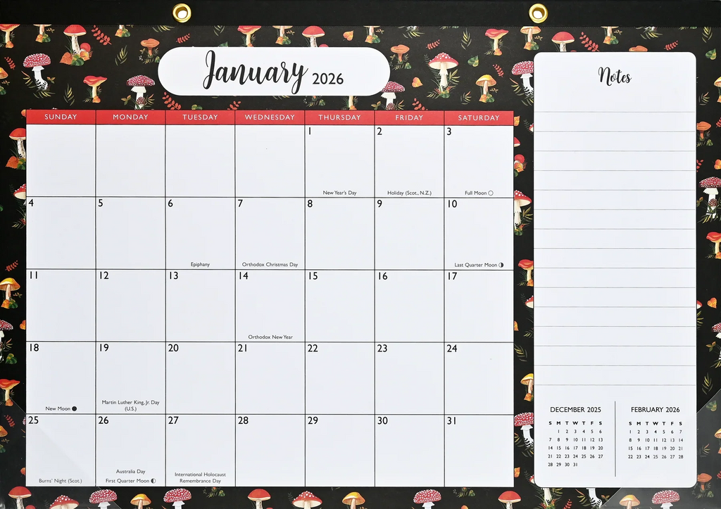Make managing 2026 more fun(gi) with this pretty and practical Mushrooms Desk Pad Calendar!