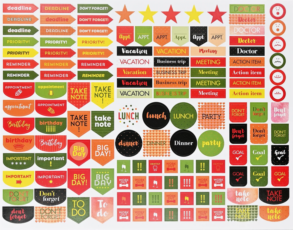 Bonus! Calendar includes 152 stickers for customizable planning, including stickers for deadlines, reminders, meetings, trips, and more.