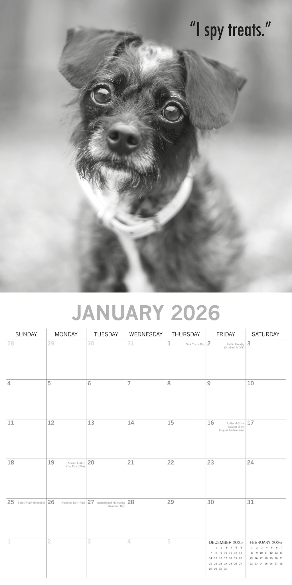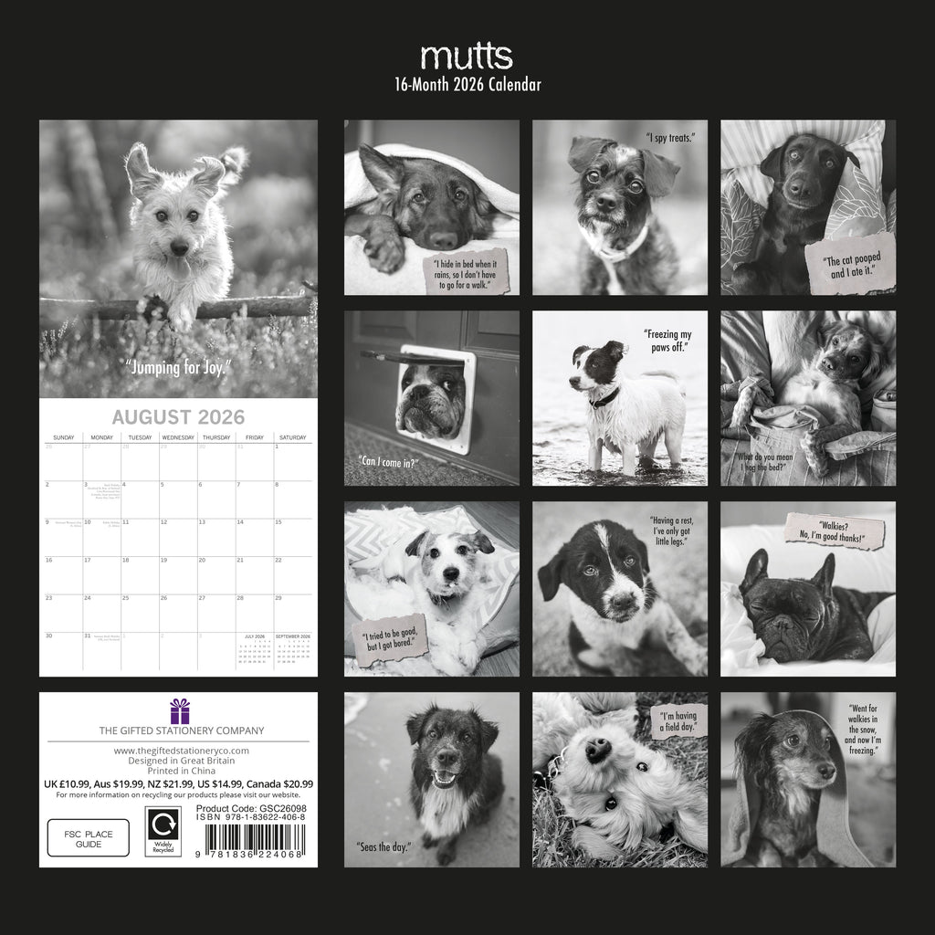 This exquisitely designed 2026 Mutts Square Wall Calendar from The Gifted Stationery Co. is ideal for your home or office and makes a thoughtful holiday gift for your loved ones. It features 13 stunning images of Mutts and includes large date grids for jotting down appointments, birthdays, and other important events. When opened, it measures 30 x 60 cm.