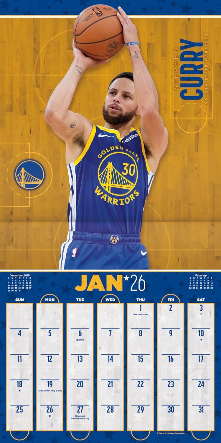The greatest players to take the floor this season carry their teams and their fans’ expectations with ease; hence the title they earn every day, NBA superstar. Marvel over their style and technique in the action shots in the 2026 NBA Superstars Calendar. Sixteen-month wall calendars feature monthly pages for January to December 2026, as well as a page combining the last four months of 2025. Each monthly page includes federal holidays and moon phases, with sufficient daily blocks for jotting down tasks and appointments to help you stay organized. Features 13 high-quality images printed on premium paper certified by the Forest Stewardship Council. Perfect for hanging on your wall, corkboard or bulletin board at home, school or the office.
