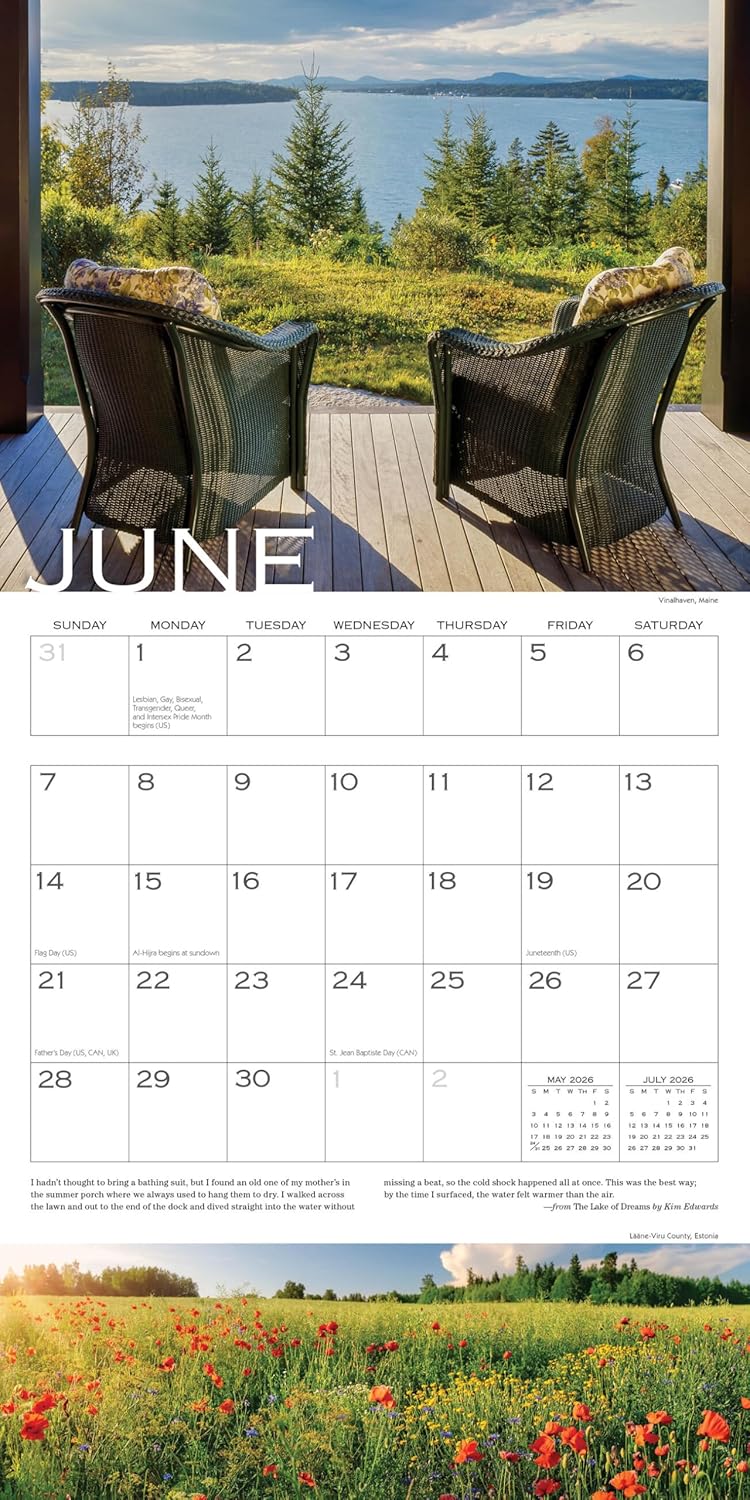 KICK BACK AND RELAX: Settle in with these tranquil porches, verandas, patios, and terraces. Each month brings a different locale and an evocative porch-themed quote!
