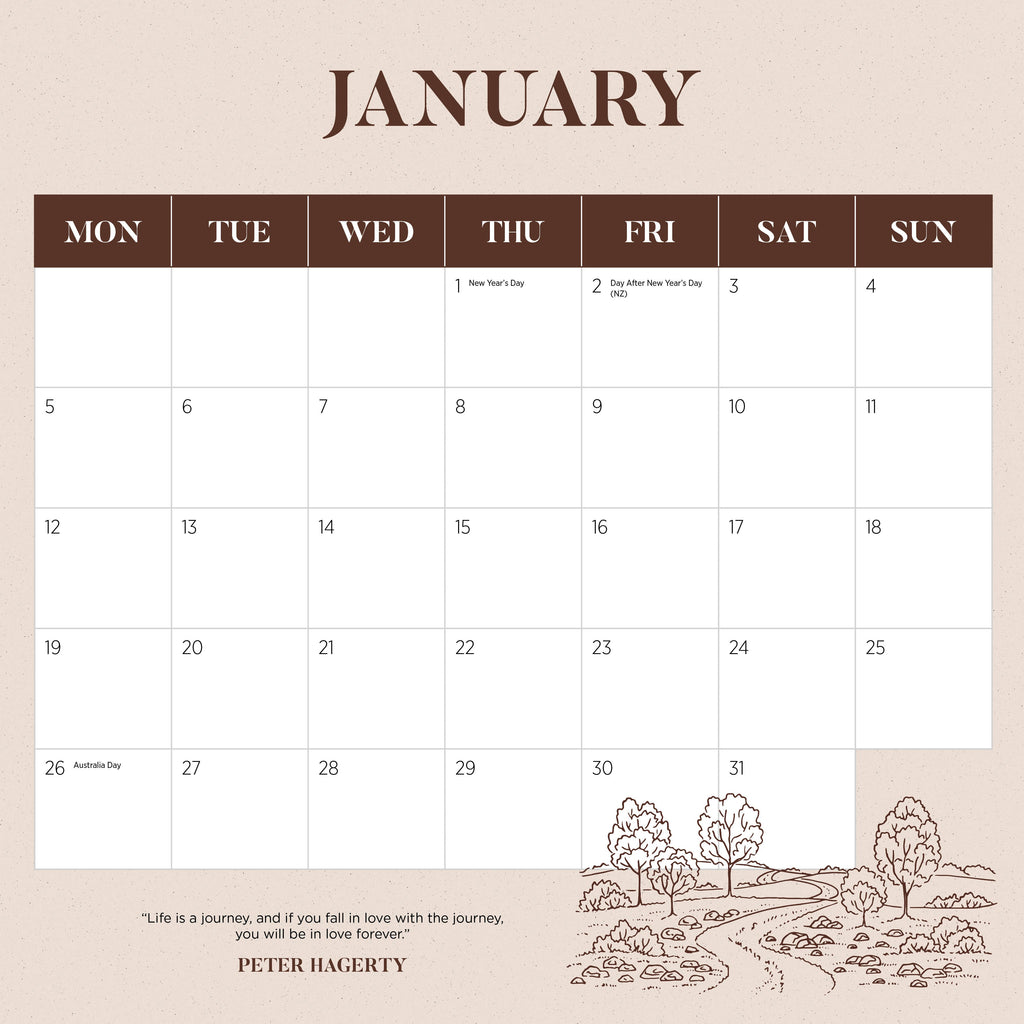 This square wall calendar covers 18-Months. Every month of the year from January 2026 to December 2026 is included, with 2027 dates also listed on a separate single-page overview. The size of the wall calendar is 300mm x 600mm when opened. Each week displayed in the calendar begins on a Monday, and all major Public Holidays and 2026 School Term dates for Australian and New Zealand Public Schools are also included. You won’t miss a beat in 2026!