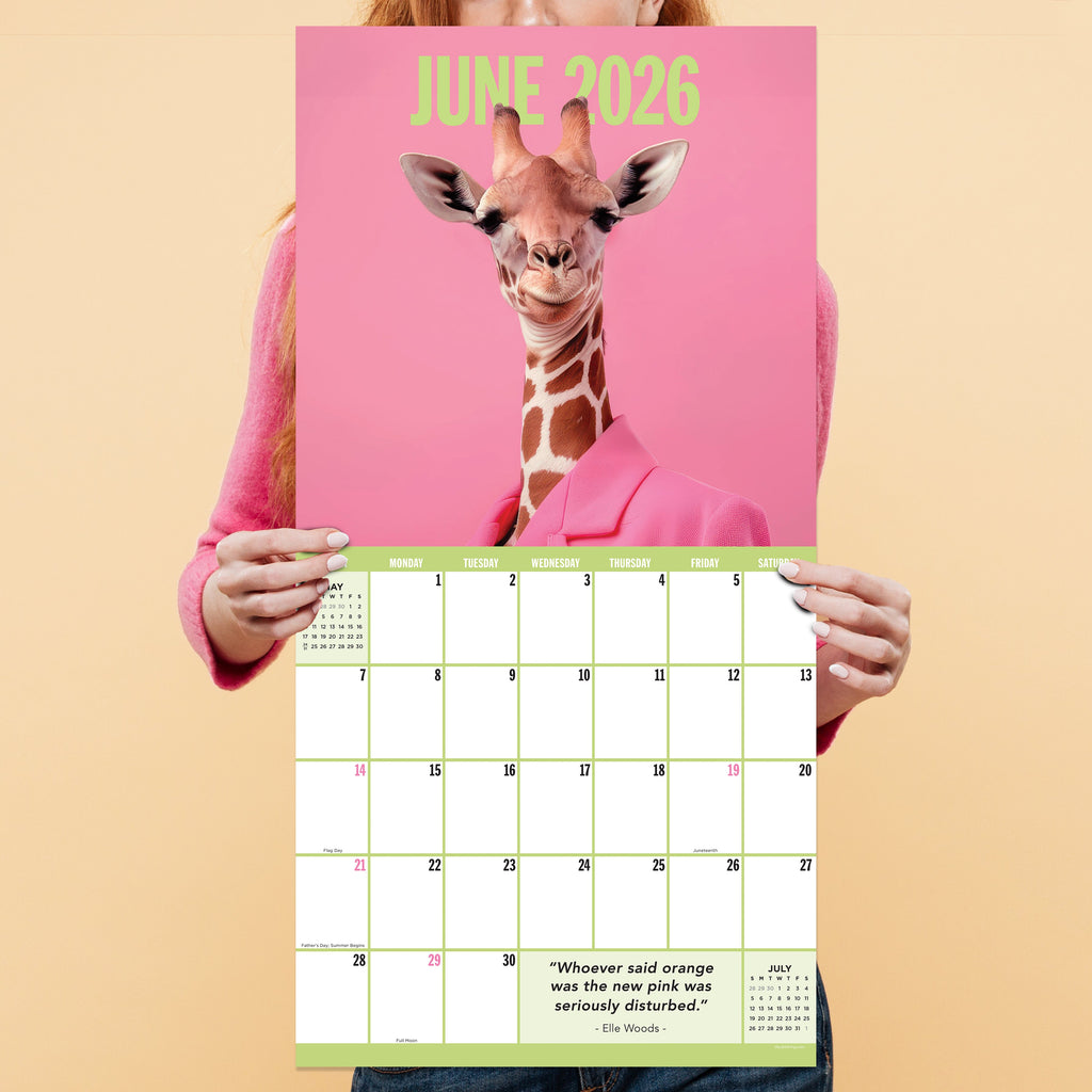 Ready for the catwalk? Measuring 12" x 12" (12" x 24" open), our 2026 Pawsmopolitan wall calendar features super stylish animals ready to hit the runway and includes monthly calendar grids and a bonus spread featuring a 4-month view of January 2027 - April 2027. Printed on FSC-certified premium matte paper.