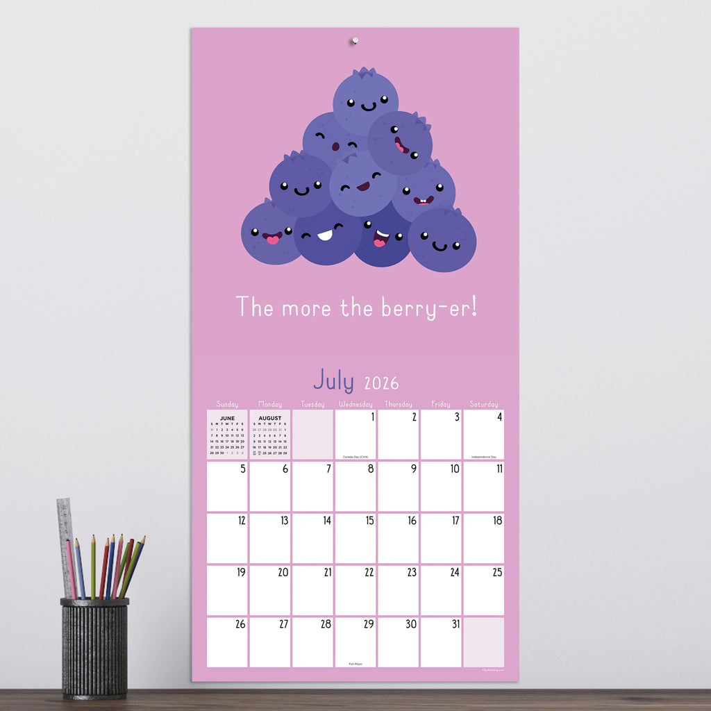 If you love a good pun, then this is the calendar for you! Featuring a new pun each month, this 2026 12-month wall calendar spans January 2026 - December 2026, measures 12" x 12" (12" x 24" open) and features thirteen hilarious puns with matching illustrations and includes monthly calendar grids and a bonus 4-month view of January 2027 - April 2027. Printed on FSC-certified premium matte paper.
