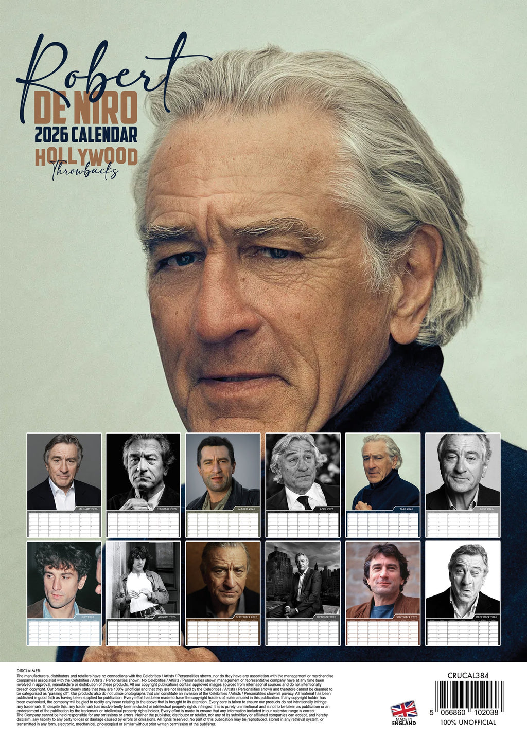 Make every day legendary with Robert De Niro in your corner! This 2026 Calendar is A3-sized and packed with 12 months of the Hollywood icon in his most unforgettable moments. Whether he's flashing that classic De Niro smirk or channeling intense screen presence, you'll be inspired all year long. It's the perfect way to stay on schedule—and add a little cinematic greatness to your daily routine!