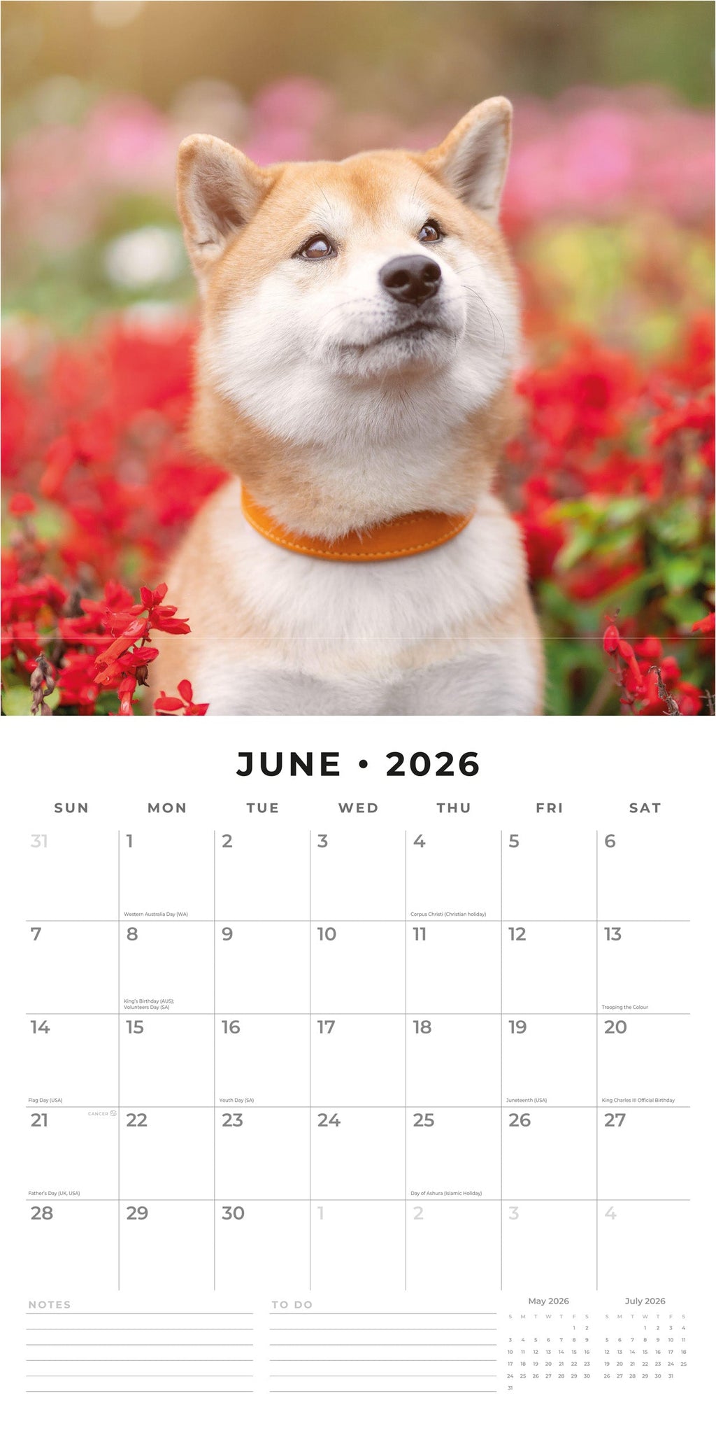 Packaged in a 100% plastic-free, sustainable, FSC-certified envelope, this 2026 Shiba Inu Square Wall Calendar from Red Robin Publishing Ltd includes 12 months plus 4 bonus months, providing extended planning and a full year of enjoyment. .
