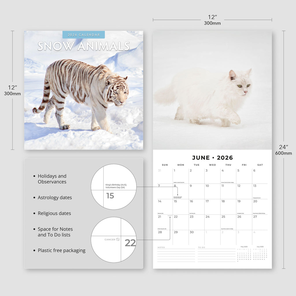 Packaged in a 100% plastic-free, sustainable, FSC-certified envelope, this 2026 Snow Animals Square Wall Calendar from Red Robin Publishing Ltd includes 12 months plus 4 bonus months, providing extended planning and a full year of enjoyment. .