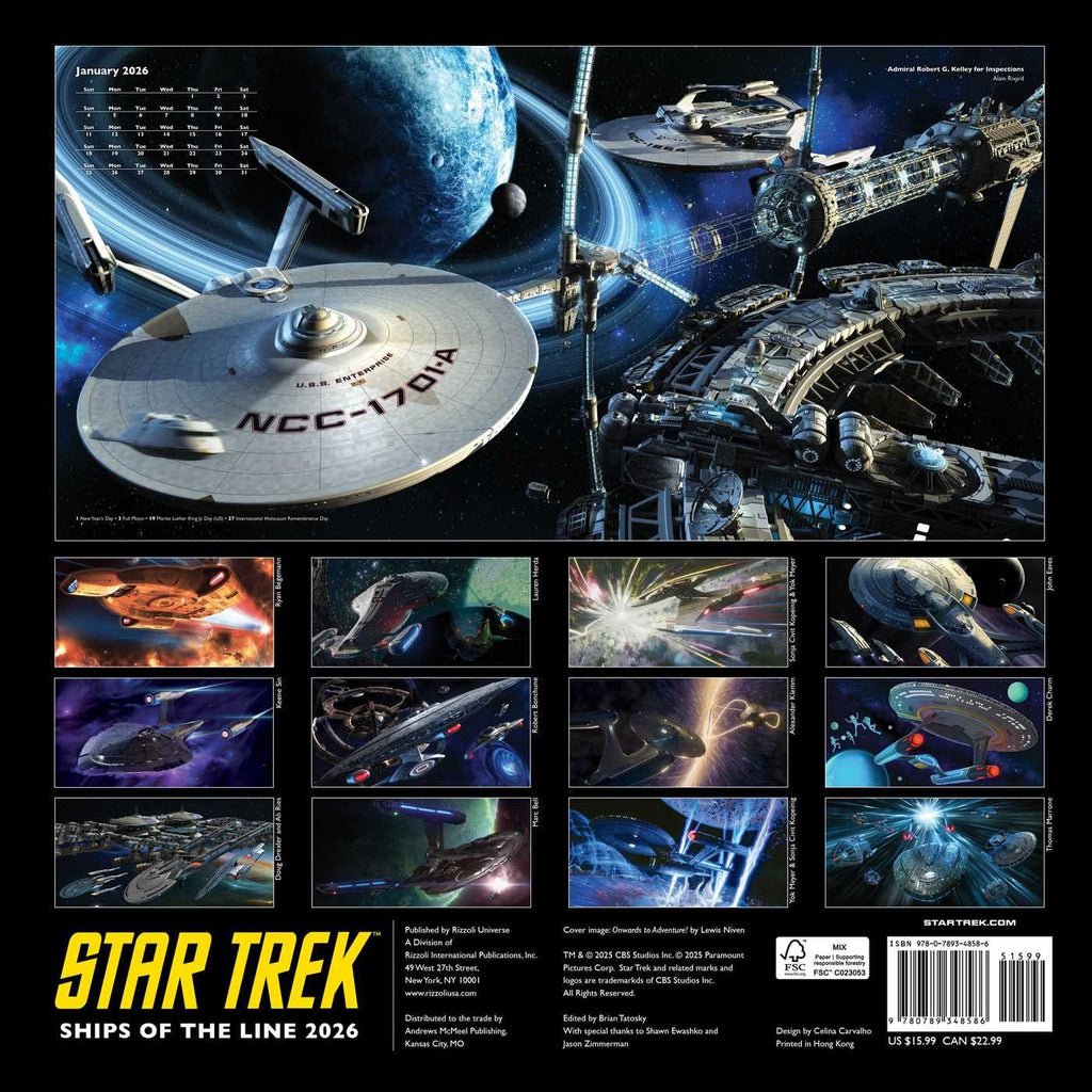The officially licensed Star Trek™ Ships of the Line 2026 Wall Calendar horizontally formatted calendar is dedicated to showcasing spectacular images of the most famous vessels from the iconic franchise in a variety of exciting scenes and settings.