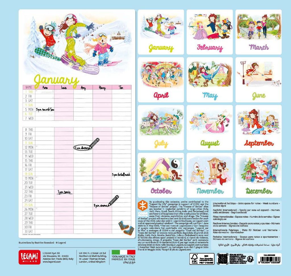 By buying this illustrated calendar, you are supporting the Cesvi Foundation