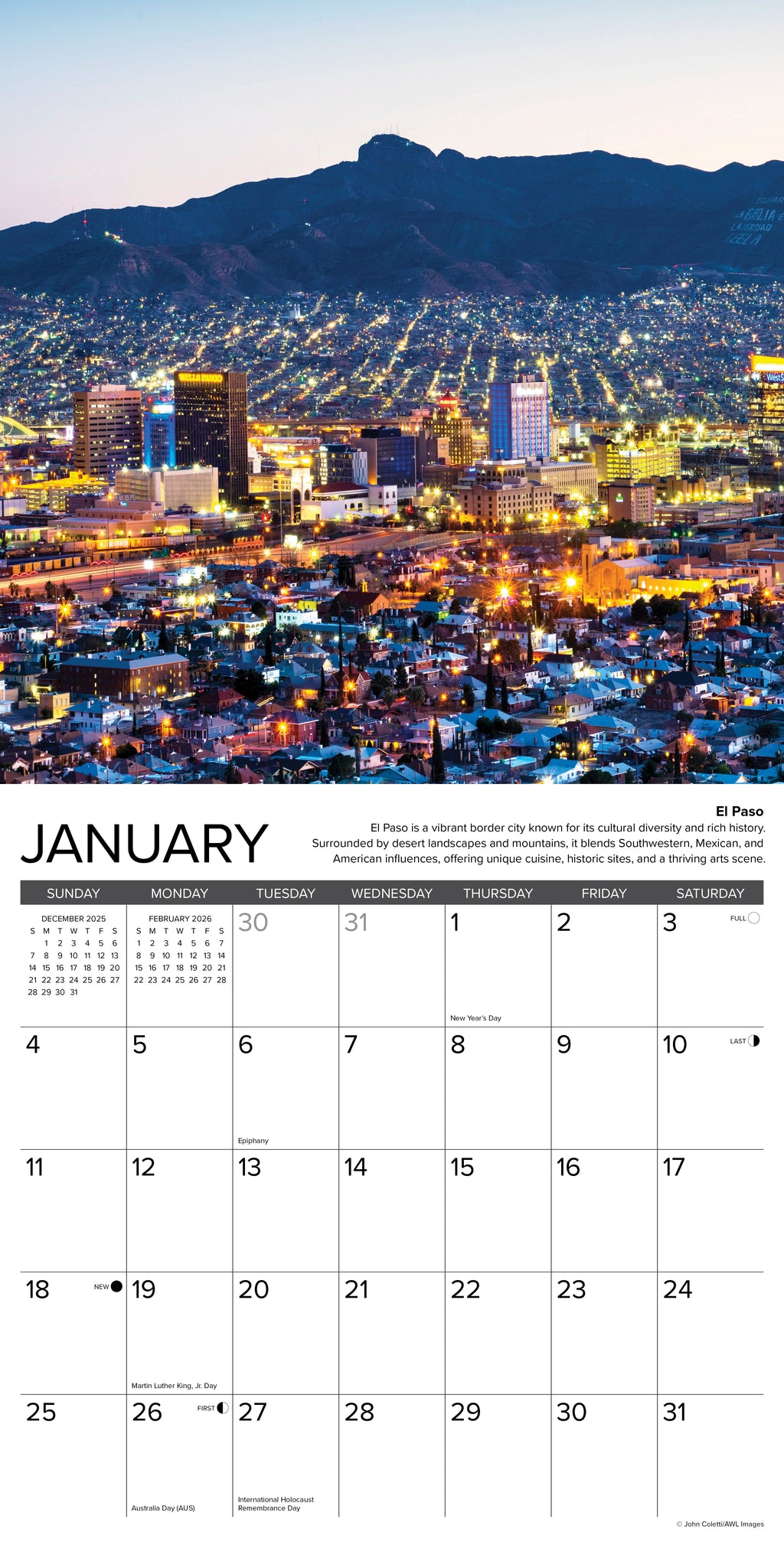 • BONUS FEATURES –US and International holidays and moon phases (CST) noted on each month for easy tracking