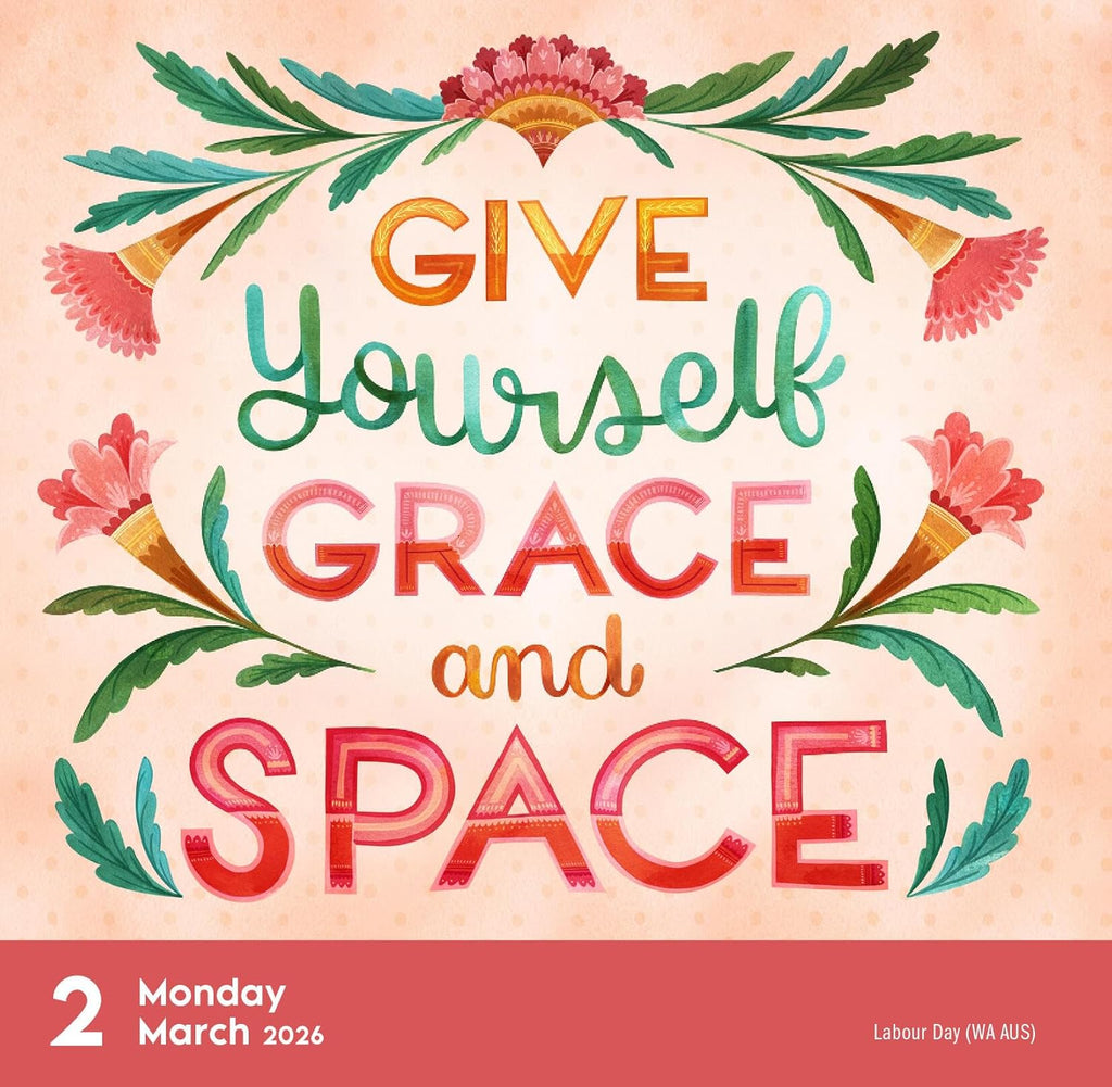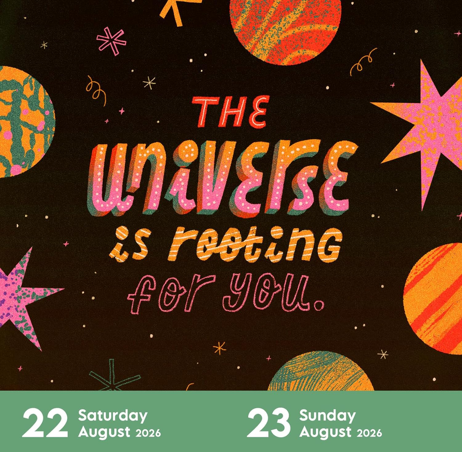 EVERYDAY ENCOURAGEMENT: Start each day with a new inspirational message like “Make yourself proud” or “All things are difficult before they are easy.” Hang up your favorite pages to create a colorful gallery of joy and optimism!
