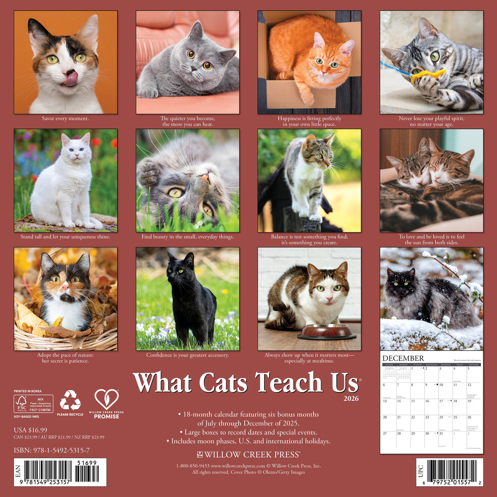 Cats have much to teach us: Practice good grooming; include plenty of Omega 3 fatty acids in our diet; nurture our independence. These lessons and more are included in these twelve delightful full color photos with accompanying text.