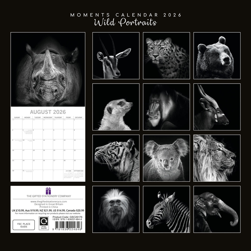 This exquisitely designed 2026 Wild Portraits Square Wall Calendar from The Gifted Stationery Co. is ideal for your home or office and makes a thoughtful holiday gift for your loved ones. It features 13 stunning images of Wild Portraits and includes large date grids for jotting down appointments, birthdays, and other important events. When opened, it measures 30 x 60 cm.