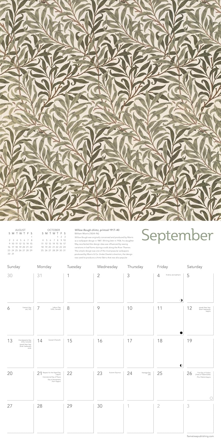 William Morris was a renowned artist, textile designer and activist. A pioneer of the Arts and Crafts Movement, his work remains as popular today as ever. Featuring 12 celebrated designs from the collection of the William Morris Gallery, this calendar showcases the beauty and flair of the original Morris & Co. aesthetic, featuring a selection of wallpapers and fabrics designed by Morris himself, as well as renowned colleagues and contemporaries such as John Henry Dearle. Informative text accompanies each work and the datepad features previous and next month’s views. Printed on FSC-certified paper, with plastic-free packaging.