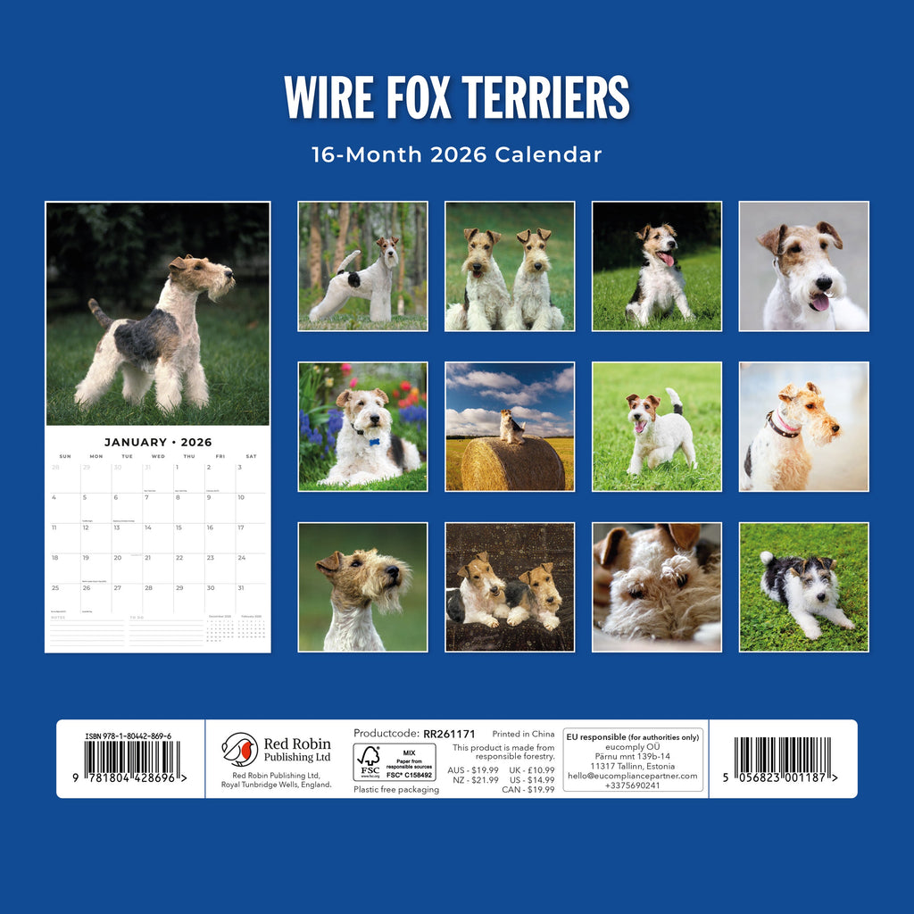 Packaged in a 100% plastic-free, sustainable, FSC-certified envelope, this 2026 Wire Fox Terriers Square Wall Calendar from Red Robin Publishing Ltd includes 12 months plus 4 bonus months, providing extended planning and a full year of enjoyment. .