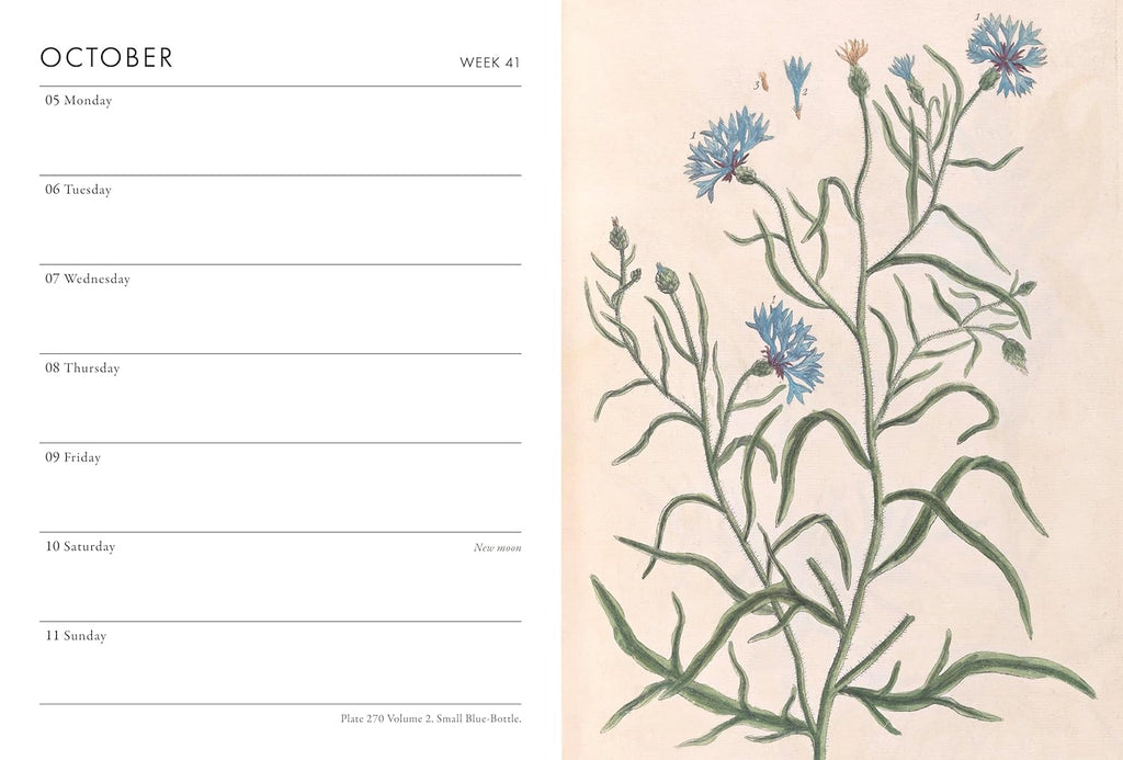 The Royal Horticultural Society Pocket Diary 2026 features exquisite illustrations by Elizabeth Blackwell (16991758) from her A Curious Herbal (173739). .