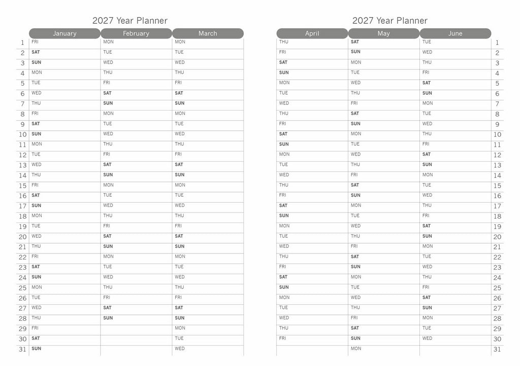 | Year | 2027 Calendar |