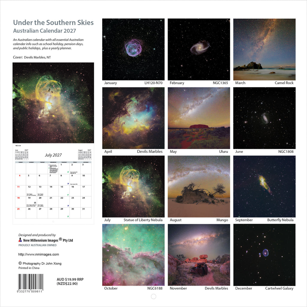Introducing our stunning 2027 Under The Southern Skies - Square Wall Calendar, perfect for keeping you organised and inspired all year long! Featuring striking astrophotography, star-filled skies and spectacular celestial scenes paired with iconic Australian landscapes, this calendar will not only help you stay on top of important dates but also brighten up any wall.